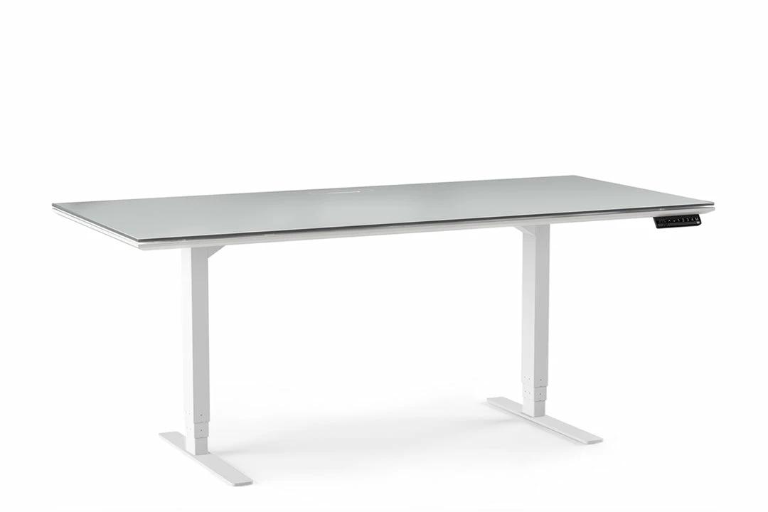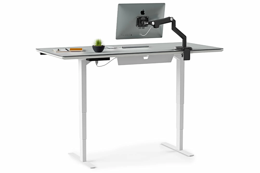 Change up your daily desk routine with the electronically adjustable Centro Lift desk available with a drawer upgrade. Stand, sit or change your desk height for various tasks. It’s part of the Centro Office Collection with the same Satin White and Grey Tempered glass finish. The Lift desk is also available in a 60” length.Â