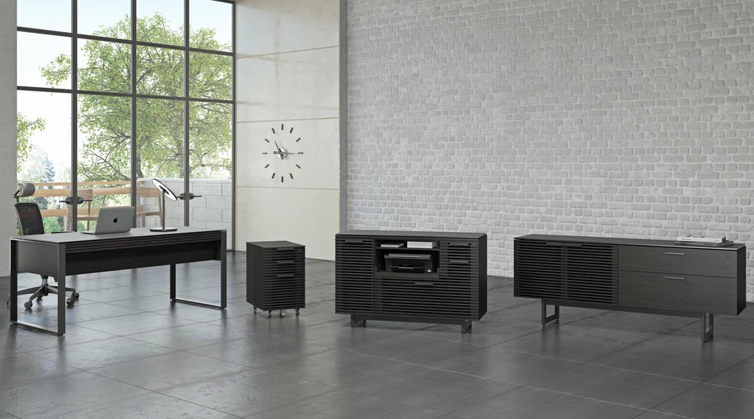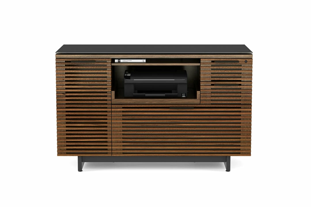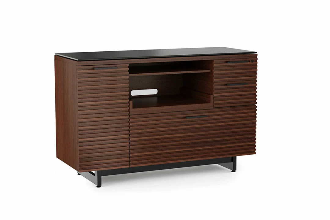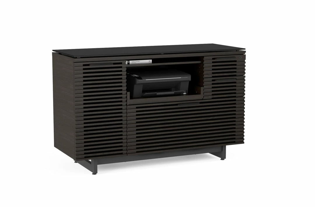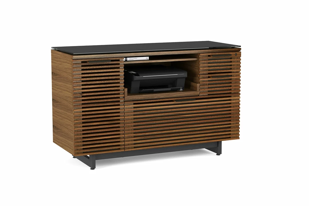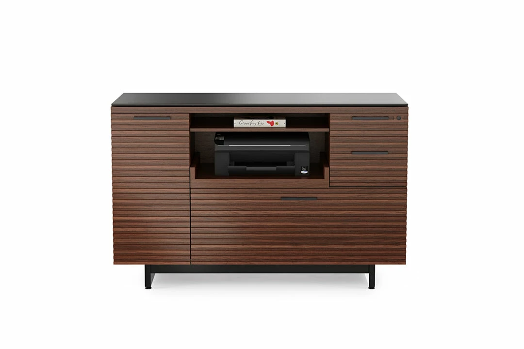 The Corridor Multifunctional Cabinet has everything you need for your office essentials, a pull-out printer tray, locking storage drawers and a supply cabinet with an adjustable shelf. Custom order in a natural walnut, chocolate stained walnut or charcoal ash finish.