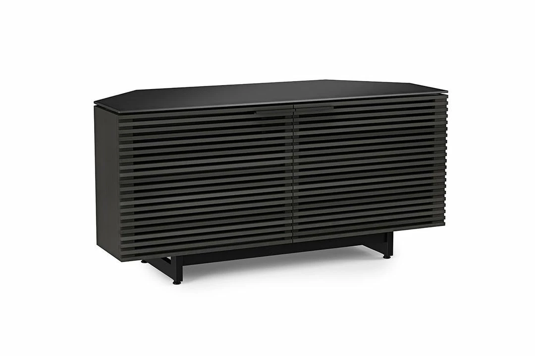 Corridor 8175 is two compartments wide and has tapered rear panels, allowing it to perfectly fit either into a corner or flat against a wall. The two louvered doors open to reveal a compartment with an adjustable shelf, allowing 8175 to accommodate a soundbar speaker and a range of electronic components. Note that this Corridor model does not include wheels.