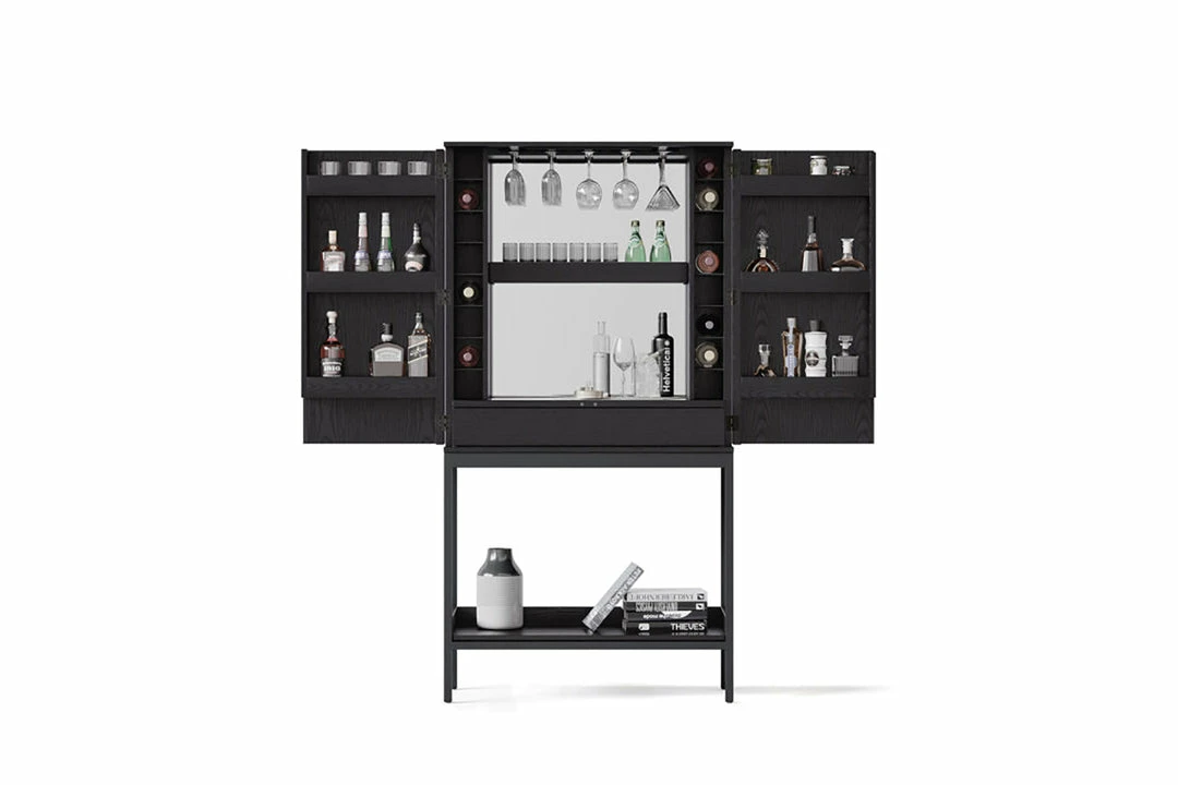 The Cosmo Bar by BDI is designed to impress. The mid-century modern style adds form and spirit to any room and cocktail party. Wine racks and adjustable shelves keep both bottles and glasses organized until it’s time to be opened and enjoyed.