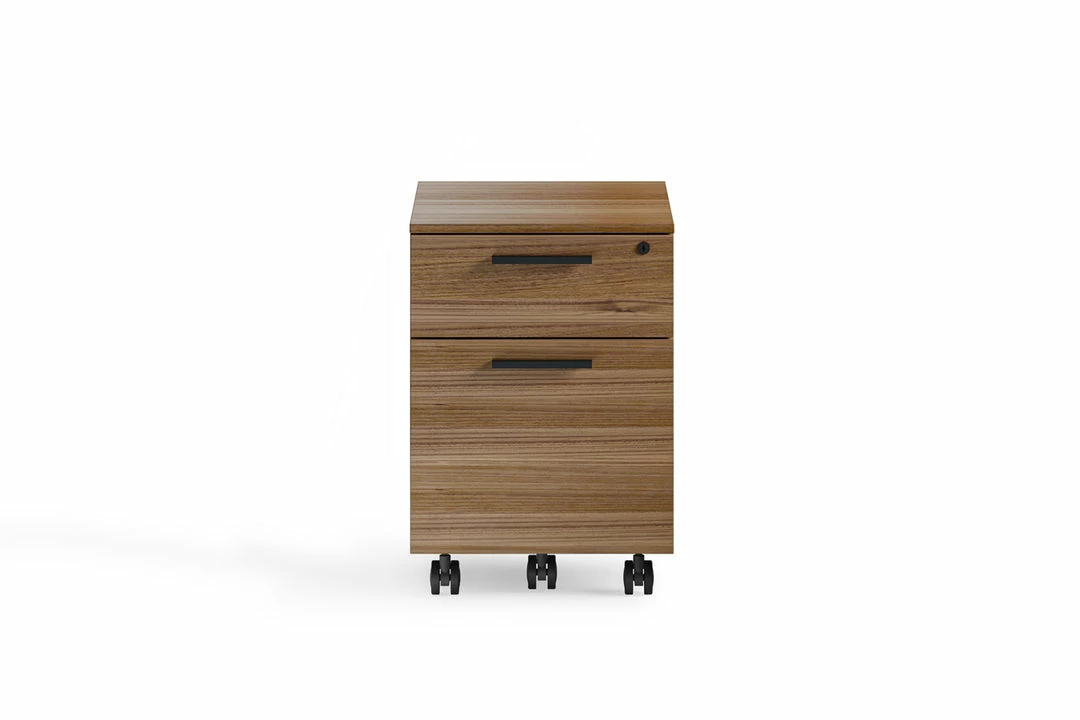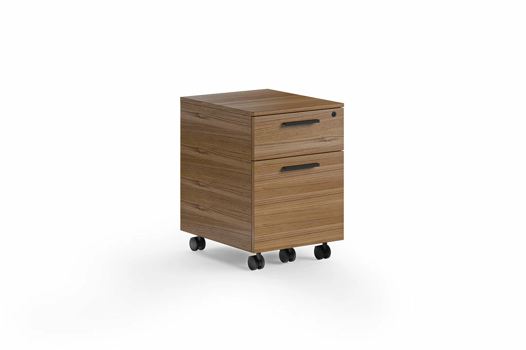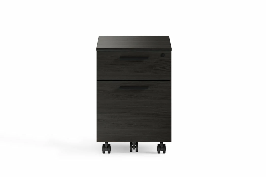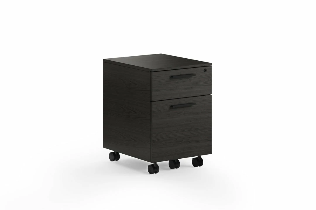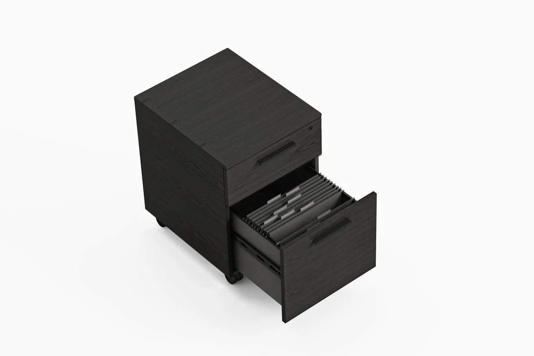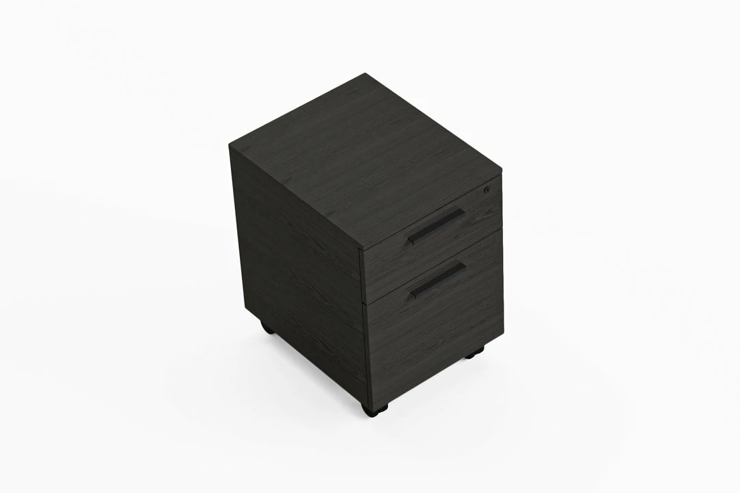 The Linea Mobile File Pedestal features locking wheels, a letter/legal-sized file drawer, and a top supply drawer. Perfect under a Linea desk or used as a mobile printer stand.