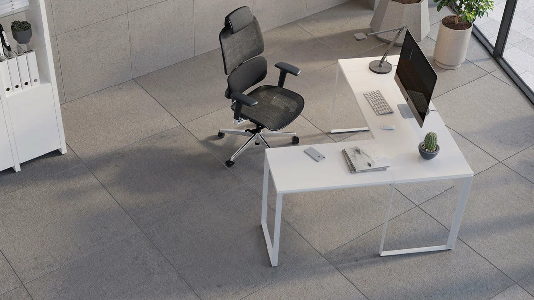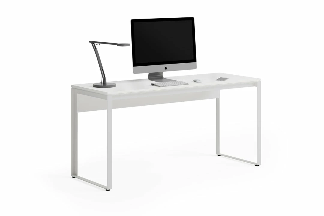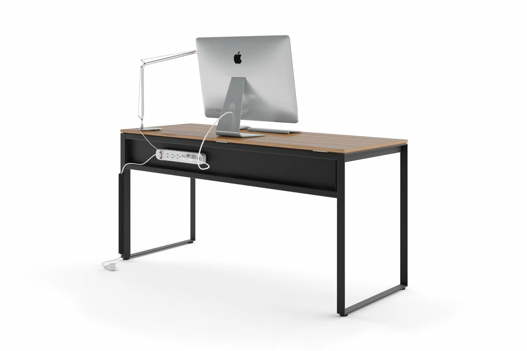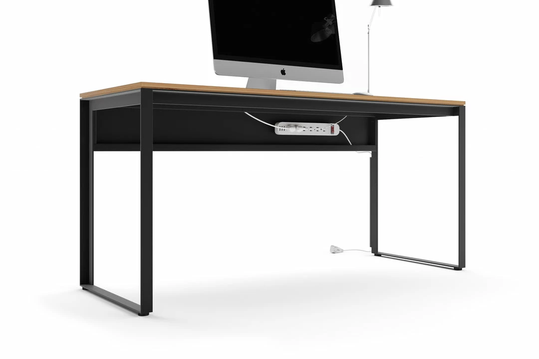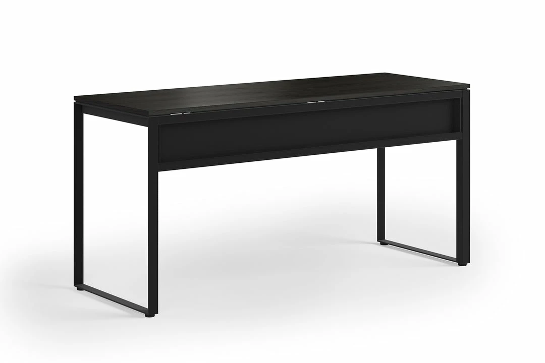 An access panel conceals the power management trough and any excess cabling contained within. Use the included cable channel to route wires down the leg of the desk for a clean and clutter-free look.