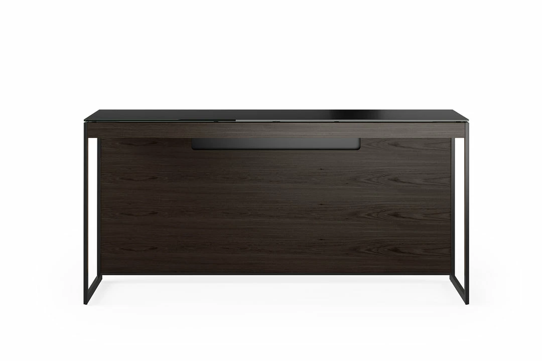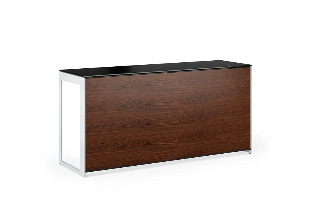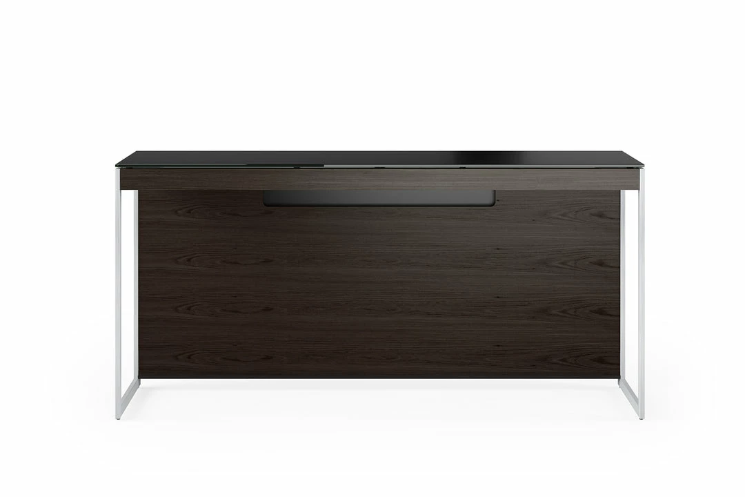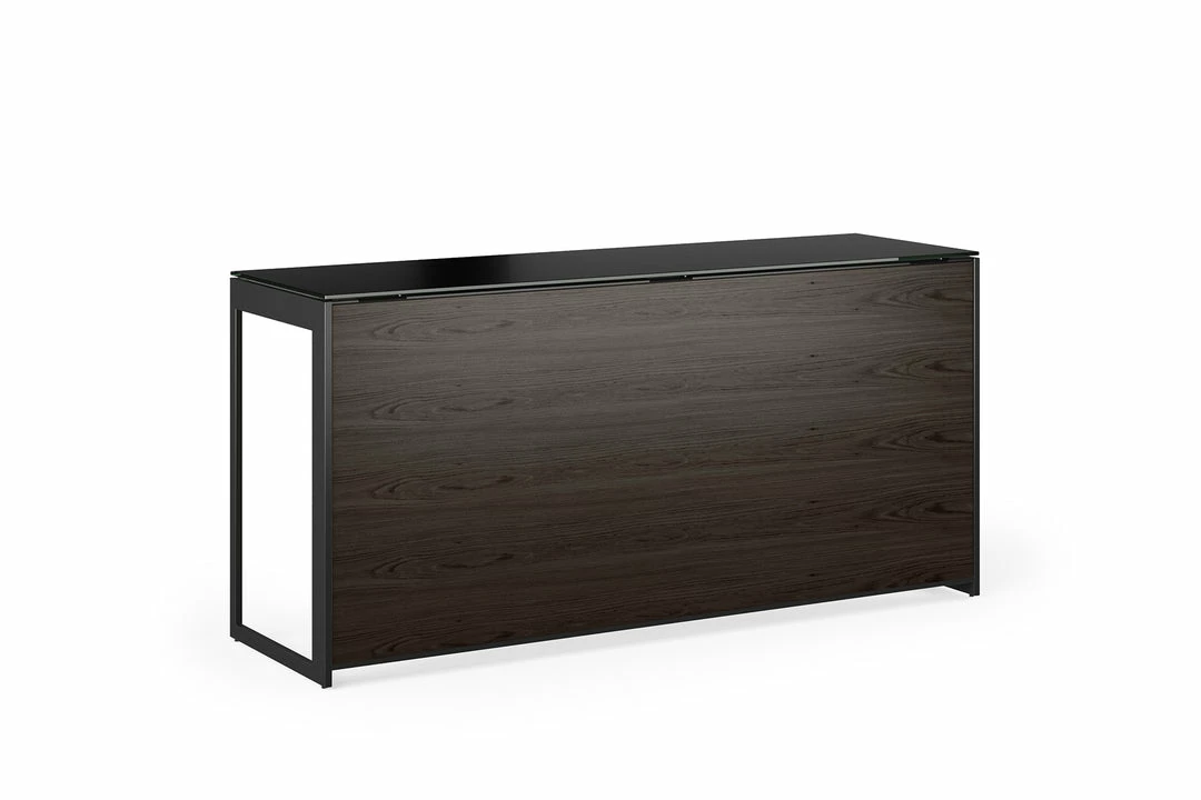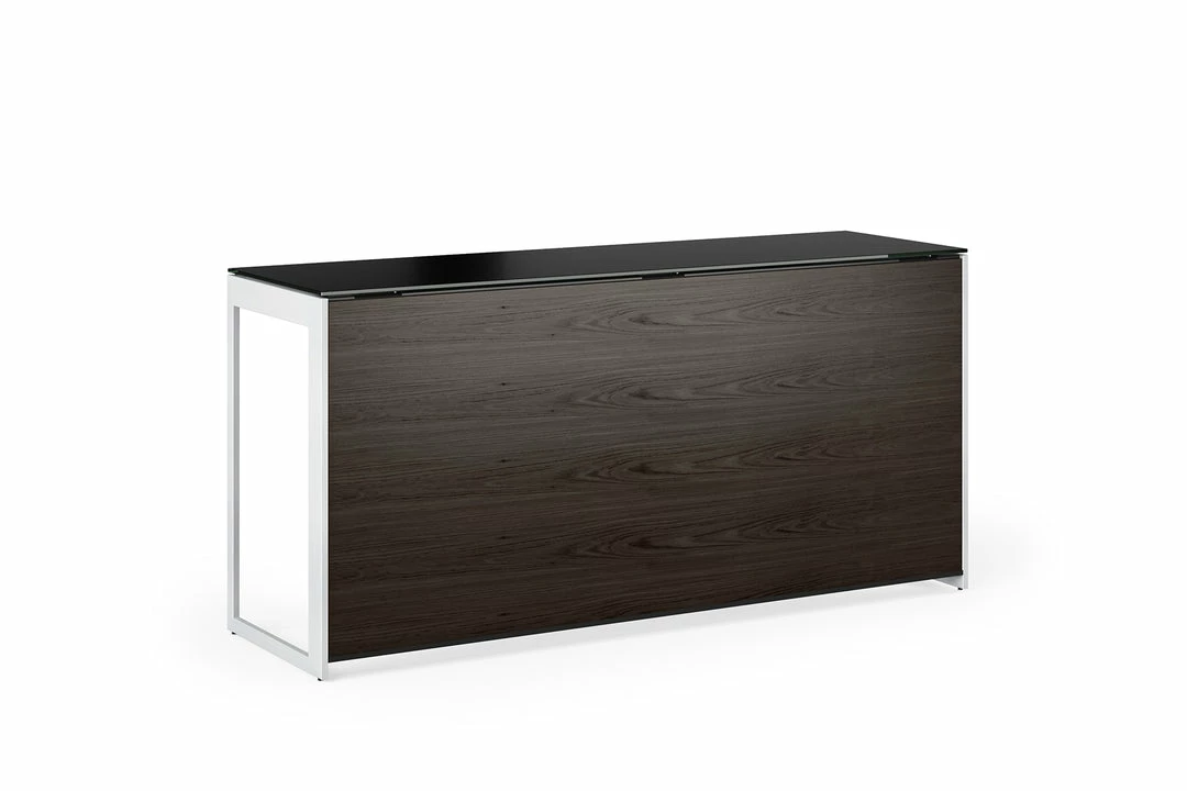 The Sequel Return can be partnered with the Sequel Desk or used alone as a laptop desk, it provides a slim workspace that conceals unsightly wires behind an easy-access panel. This highly durable opaque tempered glass has an unbelievably soft finish that provides protection from dings, scratches, and even fingerprints. The Return includes a power strip mounting kit, keeping wires organized and out of site. Easy-access panels conceal cords and cables and tilt down for easy access to connections. If being used to float in a room, you will need to choose the back panel option.