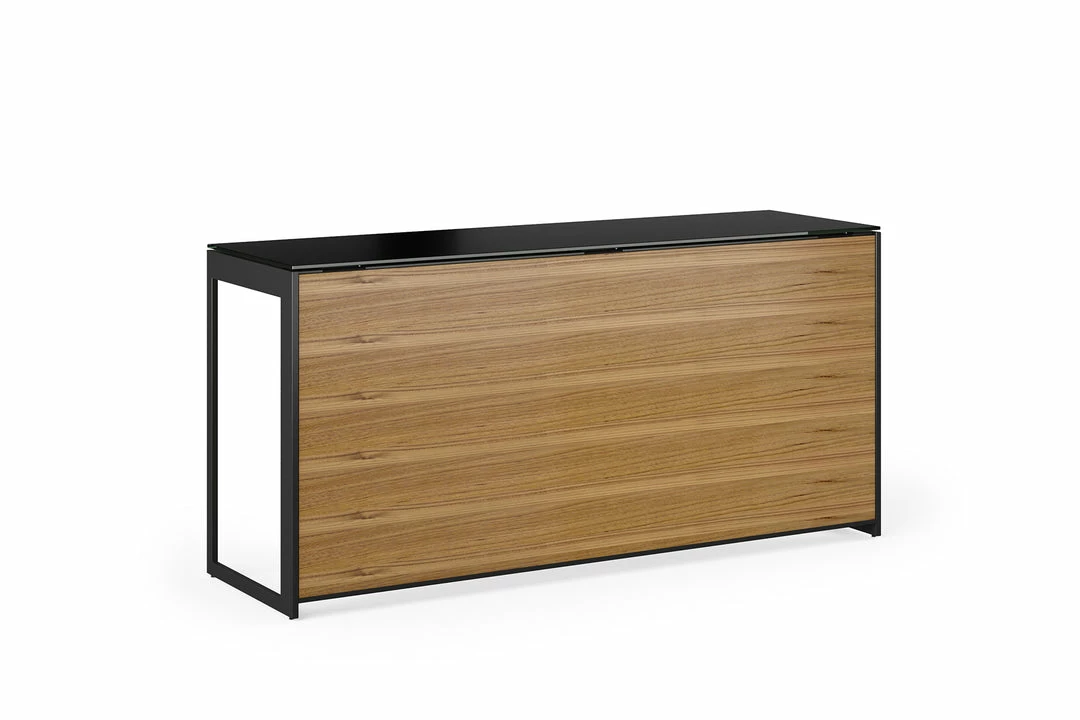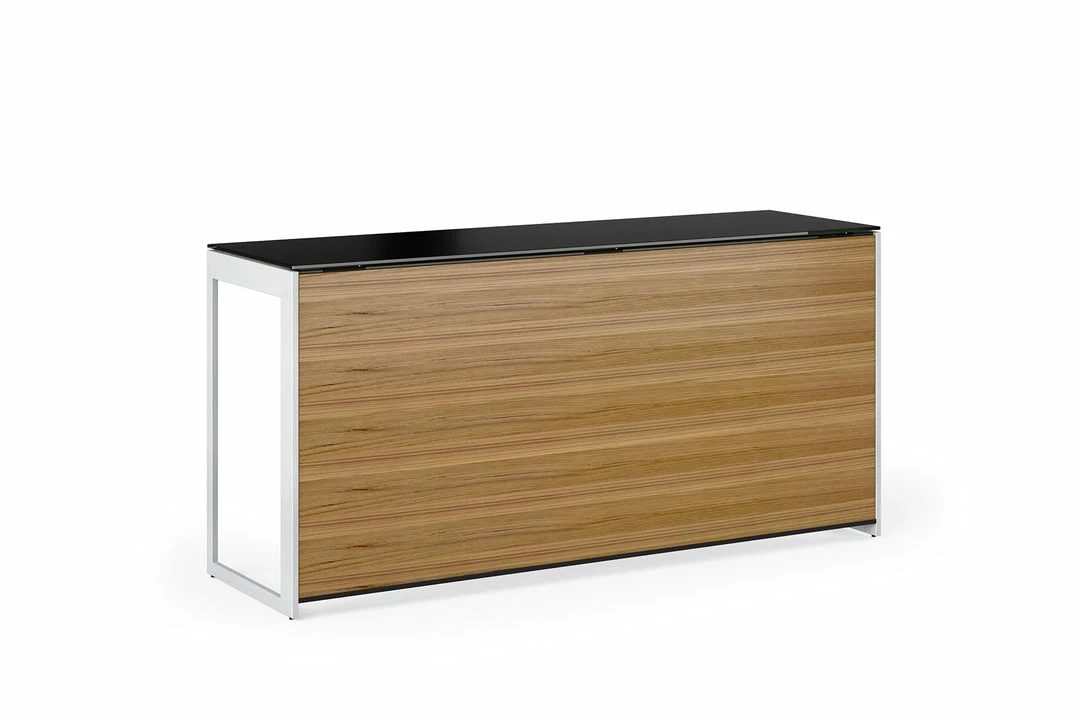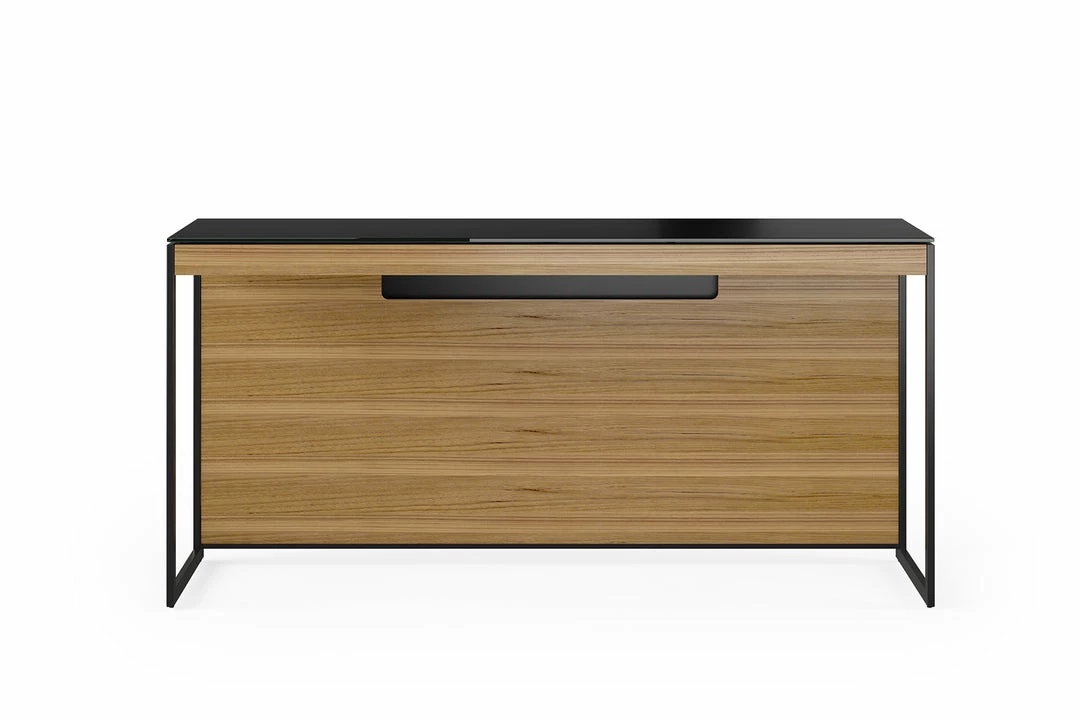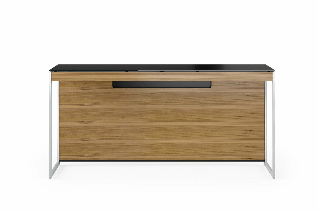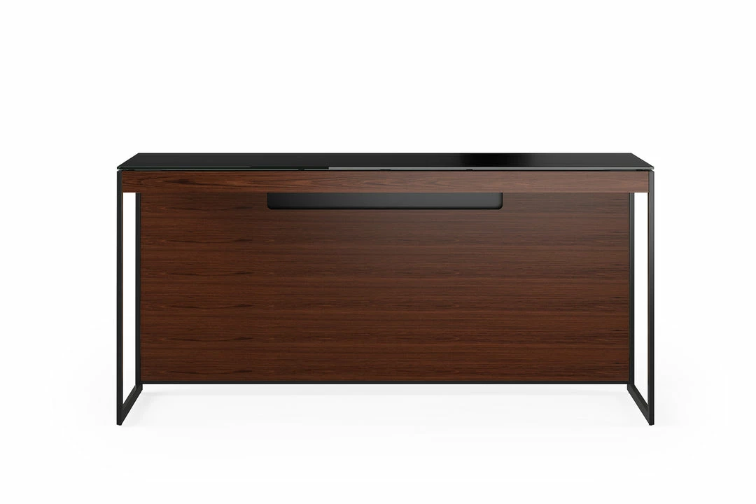 The Sequel Return can be partnered with the Sequel Desk or used alone as a laptop desk, it provides a slim workspace that conceals unsightly wires behind an easy-access panel. This highly durable opaque tempered glass has an unbelievably soft finish that provides protection from dings, scratches, and even fingerprints. The Return includes a power strip mounting kit, keeping wires organized and out of site. Easy-access panels conceal cords and cables and tilt down for easy access to connections. If being used to float in a room, you will need to choose the back panel option.