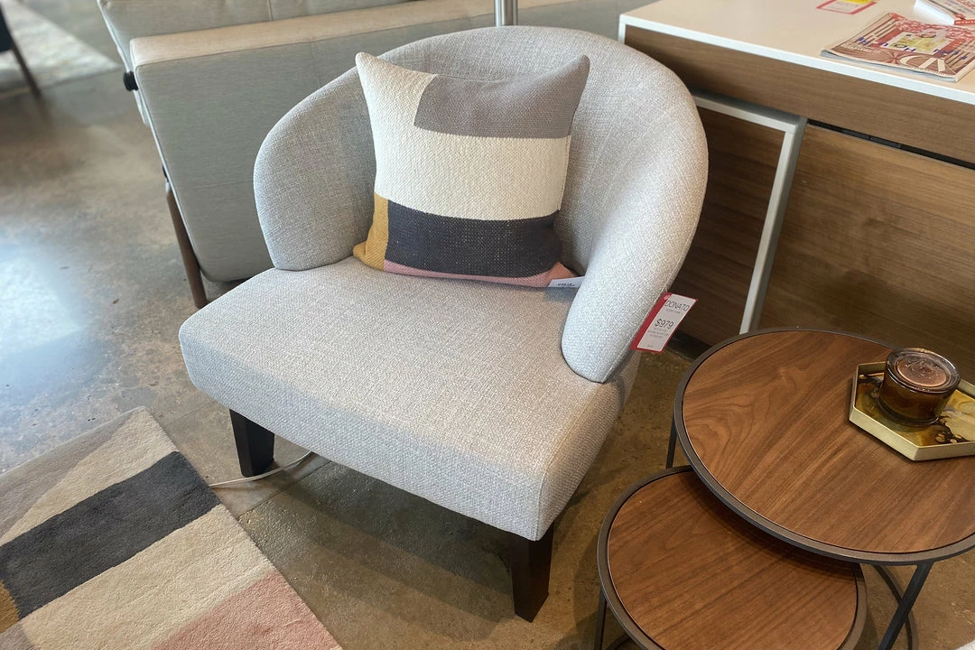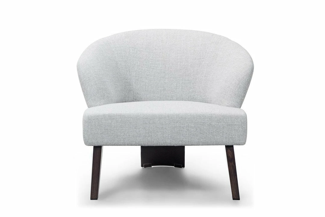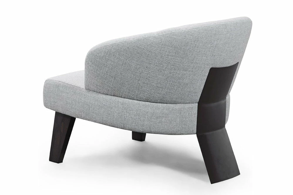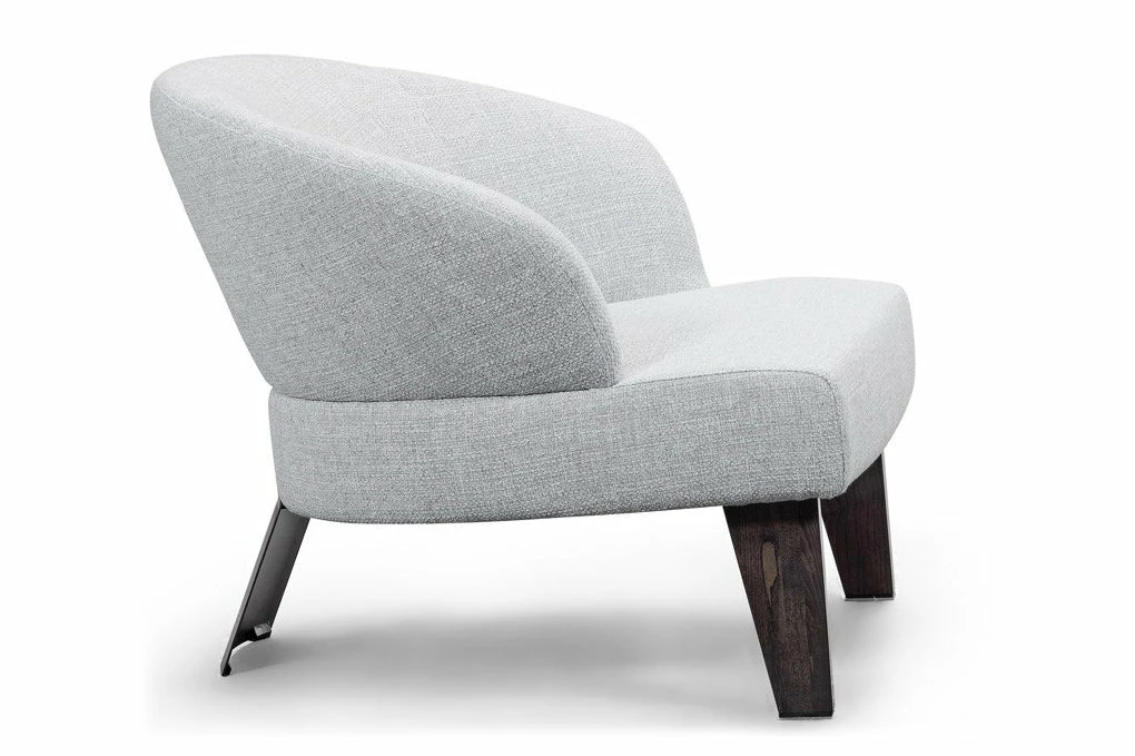 The Donato occasional chair is a great accent piece for any modern home or office. It is upholstered in a dark or light grey linen cotton cover with Walnut legs & Black Steel accent leg. It has a curved seatback creating a relaxing place to sit.Â