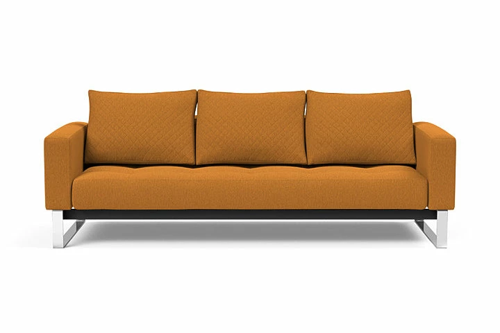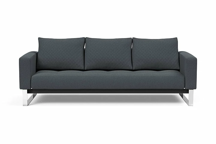 The Cassius Quilt Deluxe is a lounge sofa bed upholstered in two durable fabrics. Much like the other Cassius models the Quilt Deluxe is designed to be in the center of a room with a full 360 degree view. It is equipped with an Excess Pocket Spring mattress inside the seat and back cushion and folds out into a 55″ x 79″ bed.