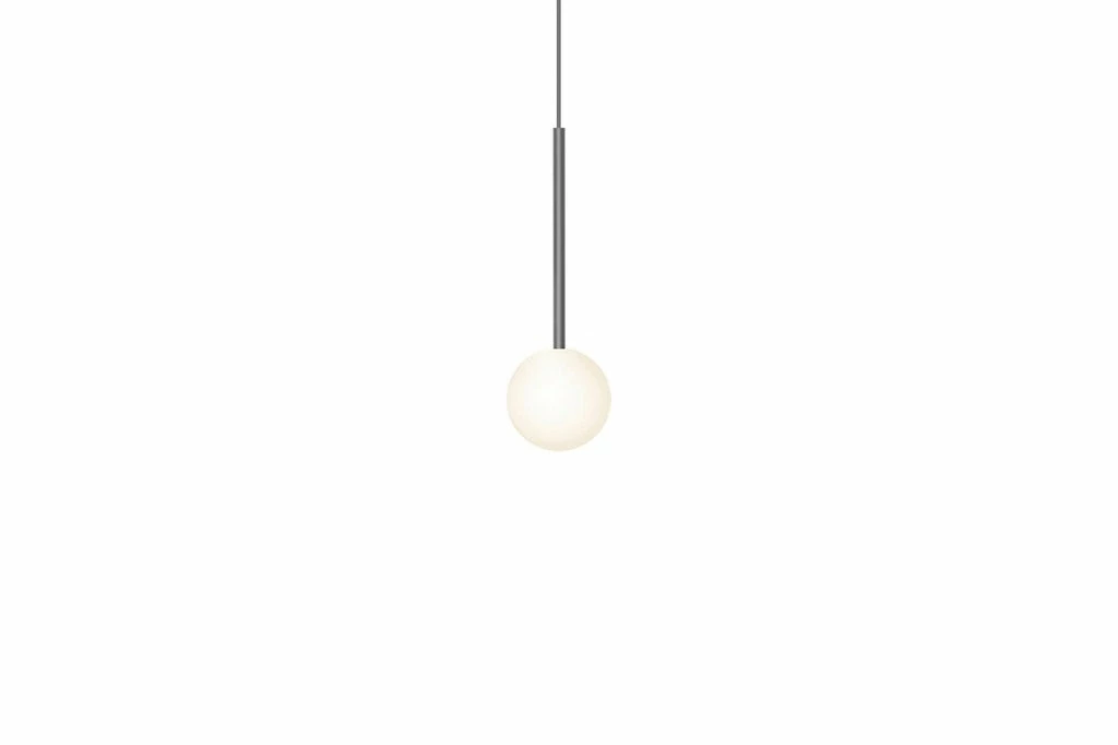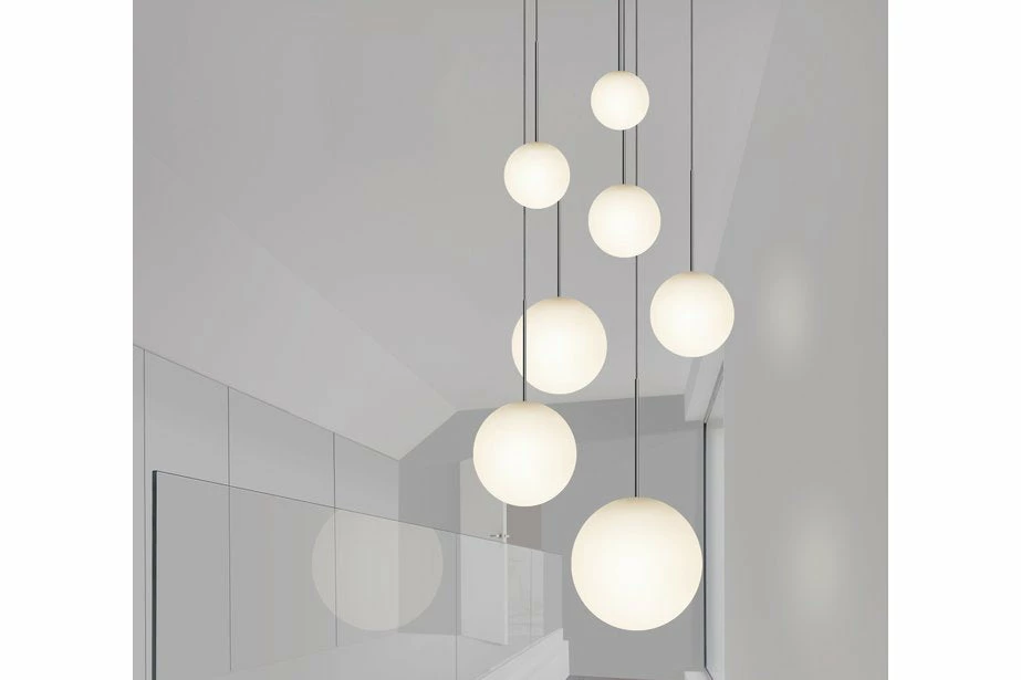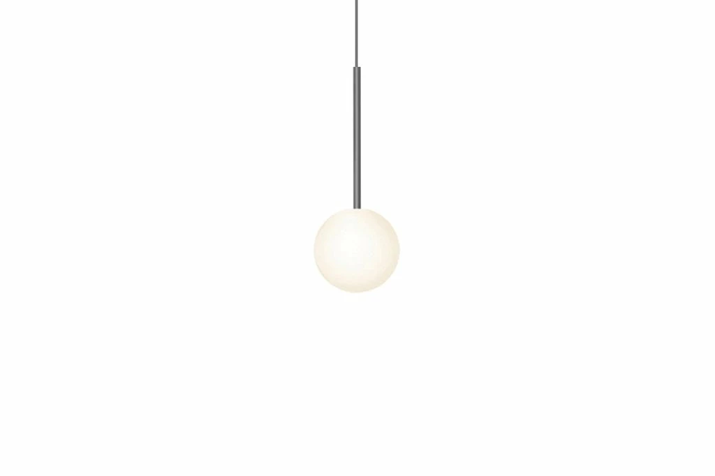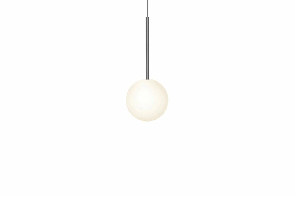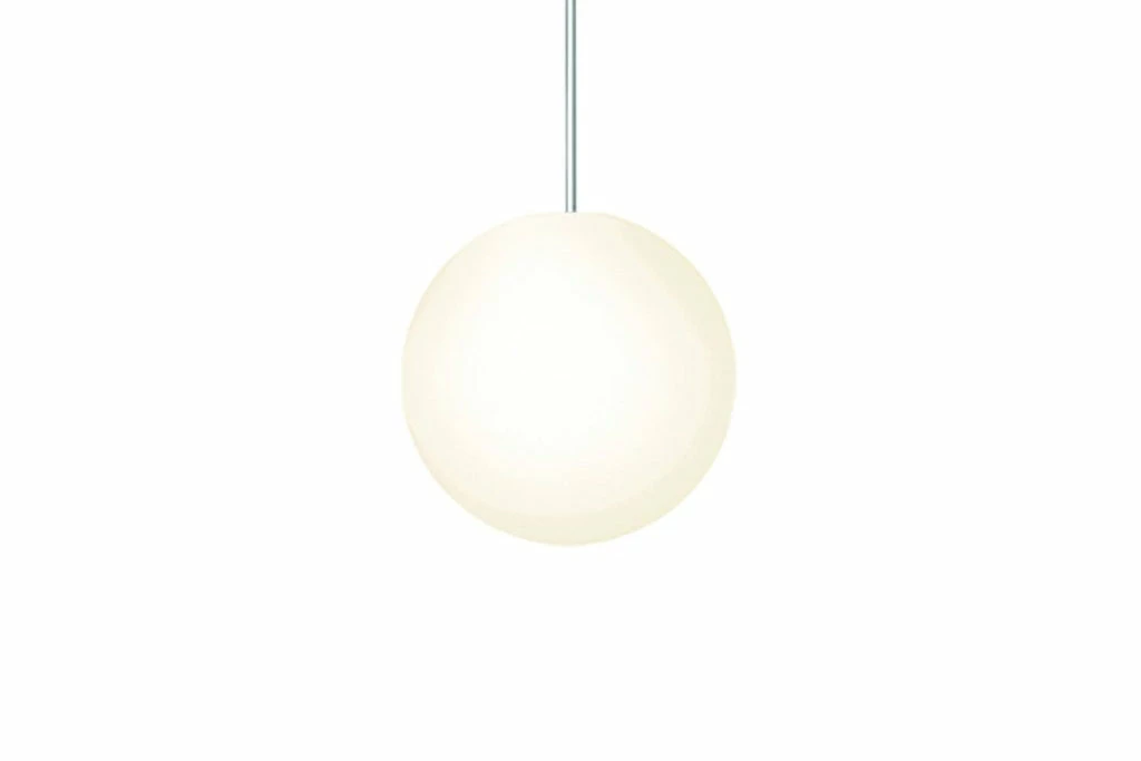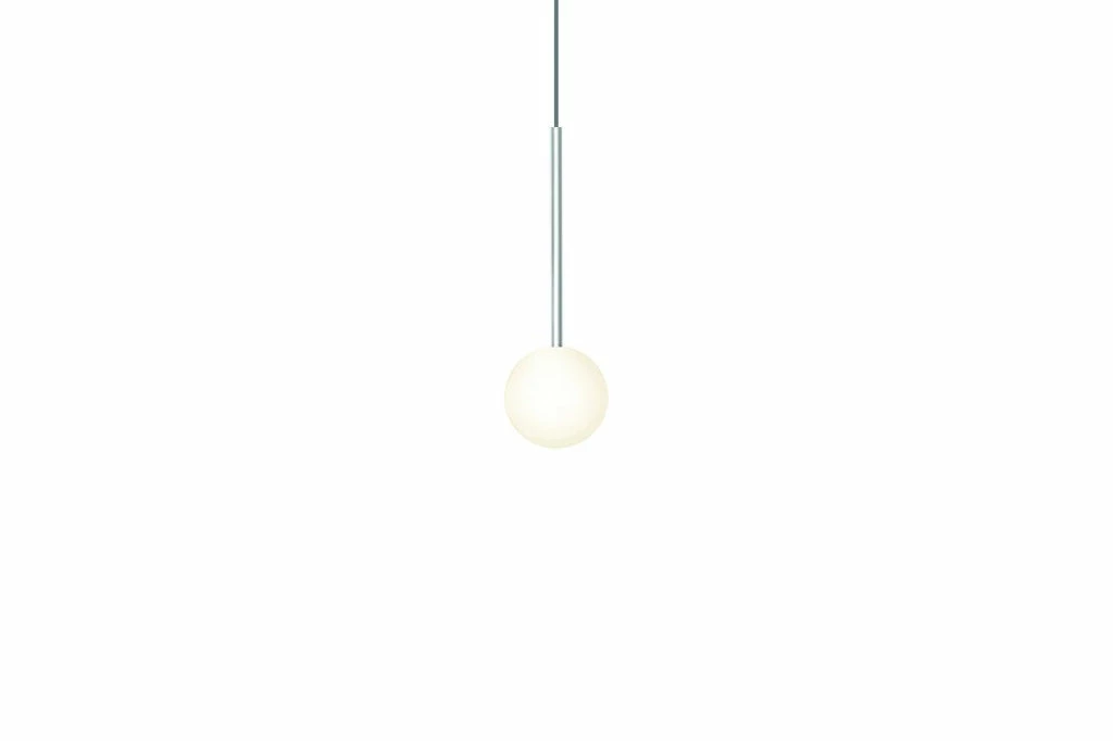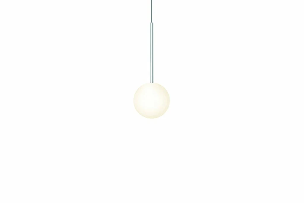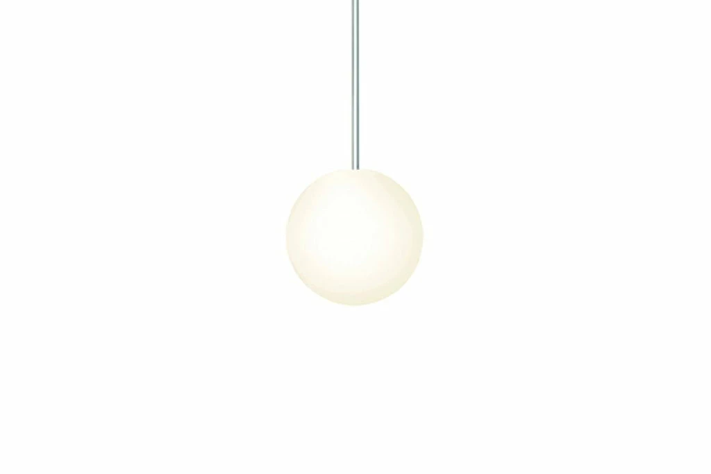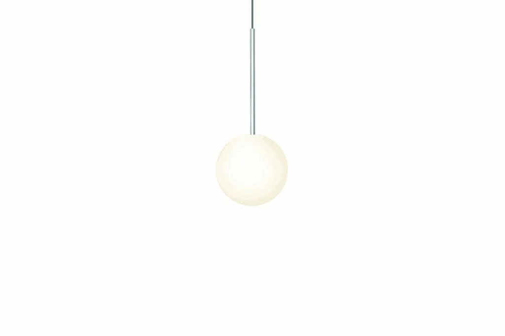 The Bola Sphere Pendant is the essential foundation of the Bola Collection with its iconic opal glass sphere and is paired with a chromatic stainless steel post. This majestic lighting feature can stand alone as one or as an elegant chandelier that allows you to mix sizes to your liking. Available in 6 different sizes and 4 finishes.