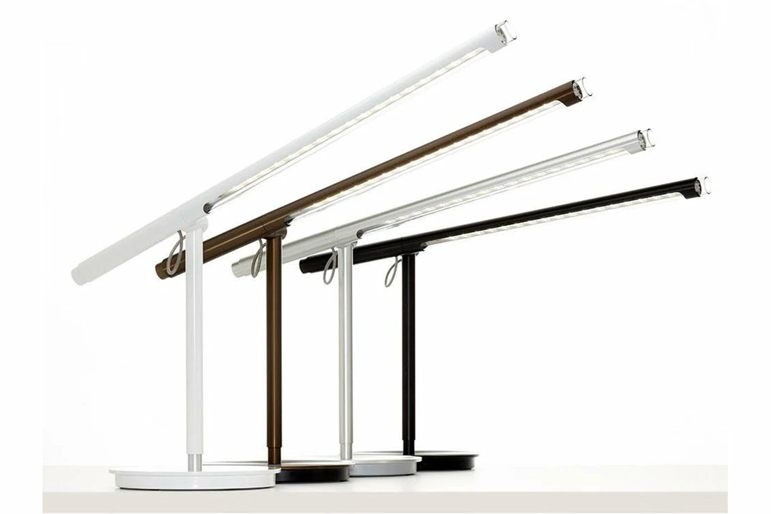 Fusing breakthrough LED technology with a uniquely tactile and calibrated light control experience, Brazo is an intelligent, precise and effortlessly adjustable task lamp. A user can tune it to any beam spread, brightness and direction, controlling the volume and focus of light. The aluminum shade on the lamp’s arm enables much of this adjustability, enabling the user to fluidly dial it around the light source to guide the beam in any direction. Although suitable for any environment, the versatility and 360° adjustability offered in its minimal frame makes Brazo ideal for use in work environments. Brazo transforms from table to floor model with a simple extension arm and ships flat-packed for easy transport.