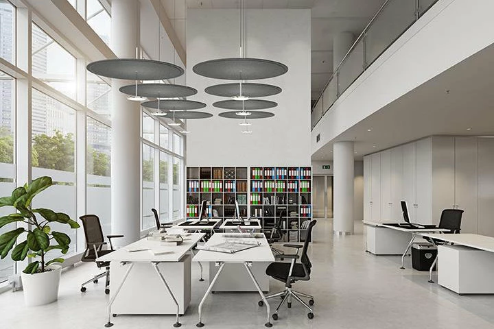 The Sky Collection was inspired as a modular pendant system featuring multiple shade reflector solutions for various decorative and performance benefits. Sky Sound combines Acoustic performance with powerful omni-directional illumination to provide a one of a kind pendant solution that minimizes ambient noise and contributes to a positive workspace.
